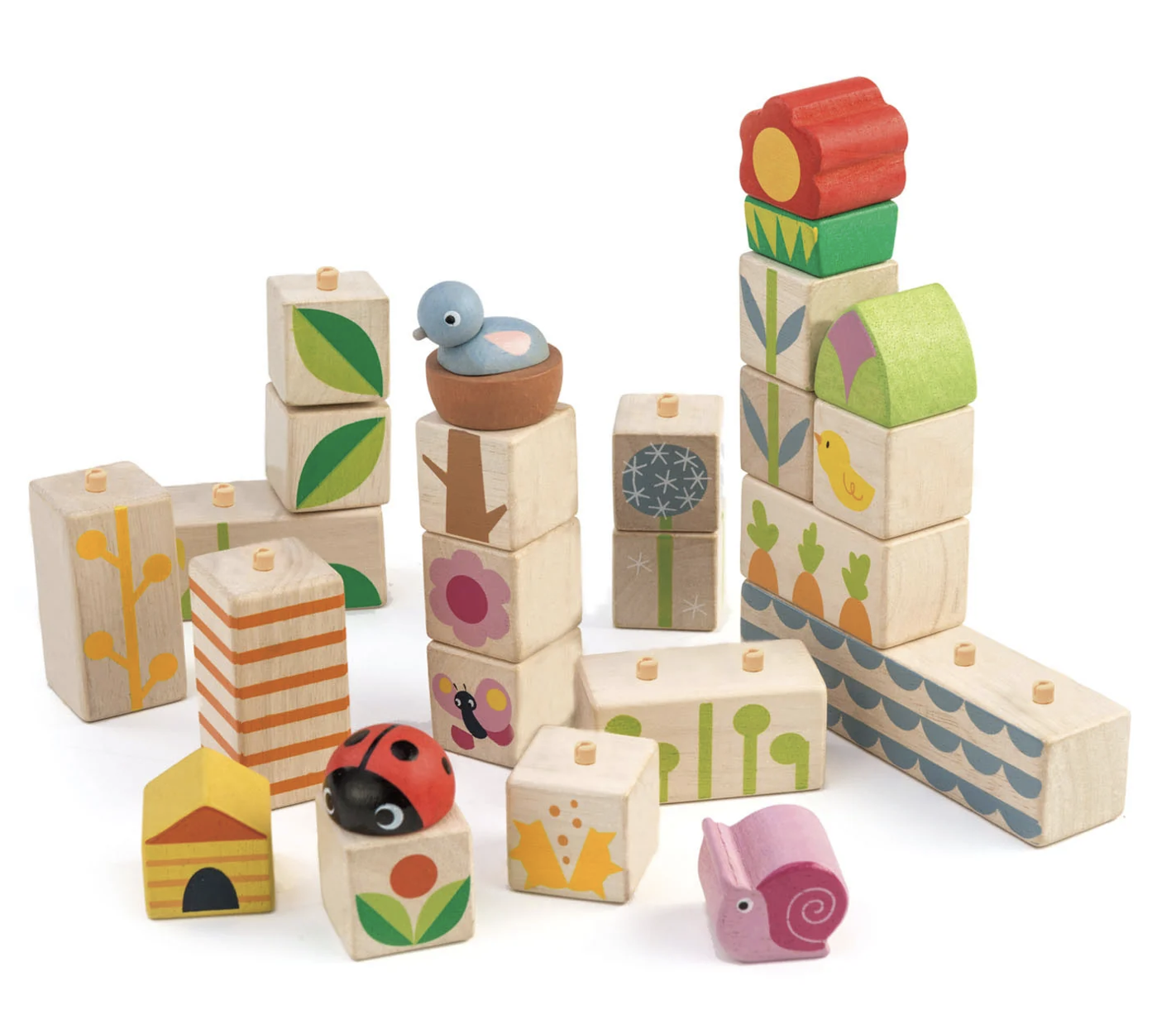Grow your own garden with these fun garden shapes! All 24 pieces of our push and click blocks are illustrated with a nature theme. Develops hand eye coordination, and balance during the stacking process. The garden graphics will also help to develop sorting skills.